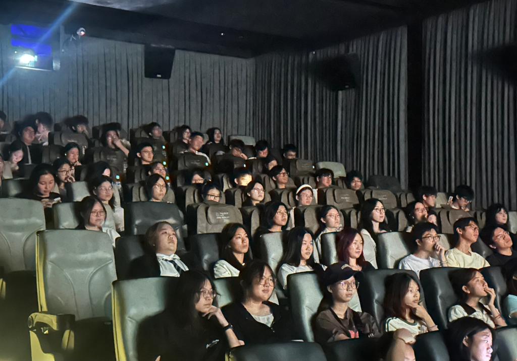 观影过程中,现场气氛庄重而专注。随着剧情推进,同学们的情绪被影片中的情节深深牵动,当看到边防战士顶着风雪站哨、在荒漠中巡逻,用青春和热血筑起祖国“钢铁防线”时,不少同学眼中泛起泪光;当连长为救溺水小同志毅然牺牲自己时,全场更陷入短暂的沉静,这份勇敢无畏、舍己为人的精神,让每个人的内心都受到强烈震撼。直至电影最后一帧画面暗去,影院内的沉静仍在延续,这份沉静里,既有对戍边艰辛的深切共情,也有对军人坚守的崇高崇敬,更饱含着对“家国担当、青春逐梦”的深刻思考。