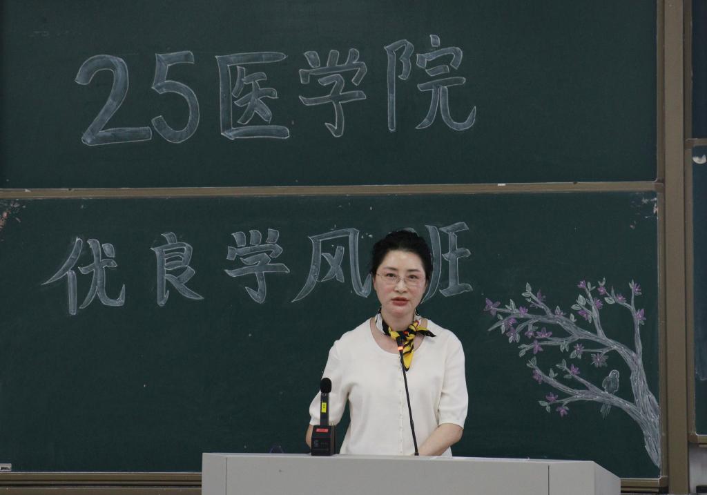 周敏作总结讲话,首先对全体班主任与辅导员的辛勤付出表示感谢。结合各班级的展示情况与教育实践,她以展示班级的主题语“等枝桠,成繁花”为引,寄语全体同学:要用情怀温暖患者、以责任践行使命、凭担当守护生命,在医学道路上凝心聚力、笃行不怠,让每一份努力都成长为守护健康的“繁花”,在成长中绽放光彩、践行医学理想,共同书写新时代医学人才的卓越篇章。