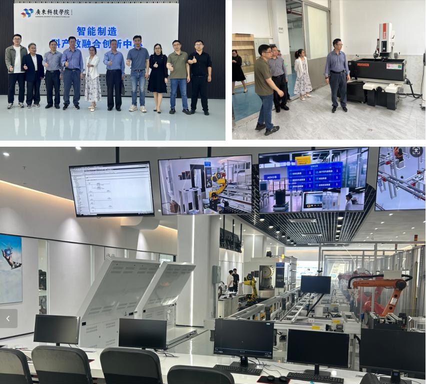 在广东科技学院受到机电工程学院院长高俊国教授的热情接待,在唐联耀副院长带领下,调研团队重点考察了工业机器人实验室、3D打印实验室、电力电子实验室等专业实验室,智能制造科产教融合创新中心、机器人产业学院及东莞市工程技术研发中心。详细了解实验设备运维、课程开设以及学生实践项目开展情况,针对目前实验室在产学研对接中存在的难点展开研讨,让学生在实操中提升专业知识。