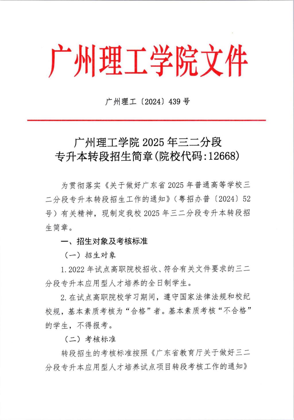 广州理工学院2025年三二分段专升本转段招生简章