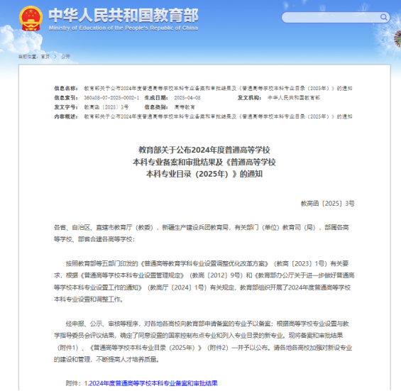 近日,教育部公布了2024年度普通高等学校本科专业备案和审批结果,我校新增新能源汽车工程、光电信息科学与工程、无人驾驶航空器系统工程、大数据管理与应用4个本科专业。此次新增专业的获批,是我校紧密围绕国家战略需求、服务地方经济建设、坚持创新驱动发展的重要成果,进一步优化了学校的专业结构布局,为学校发展注入了新的活力。