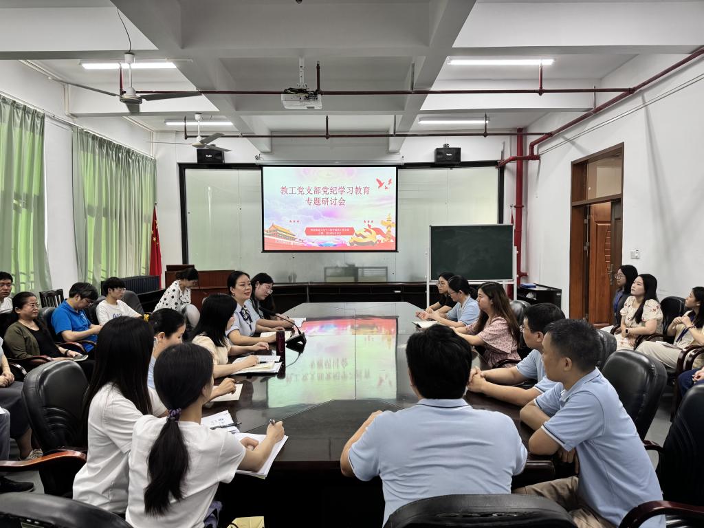 为深入开展党纪学习教育,切实增强支部全体党员廉洁自律意识,筑牢思想防线。6月20日我院教工党支部开展党纪学习教育专题研讨交流会,会议组织员仲康佳老师主持。