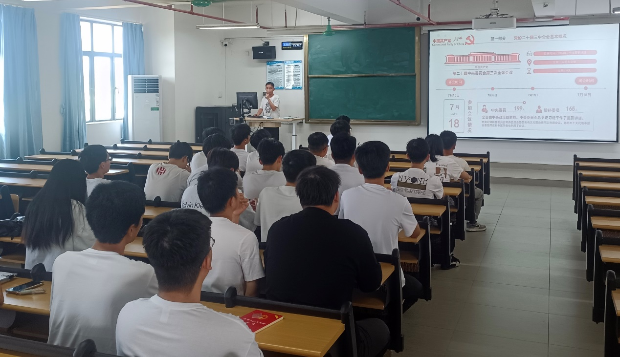 为了我院学生党员能够更全面、更准确地把握党的二十届三中全会的精神实质和核心要义,10月10日下午,我院学生党支部于13栋教学楼召开党的二十届三中全会精神学习会,学生第一、二、三党支部全体党员参加,由各支部支委曾源楷、陈泳芯、蔡展宏主持各支部会议。