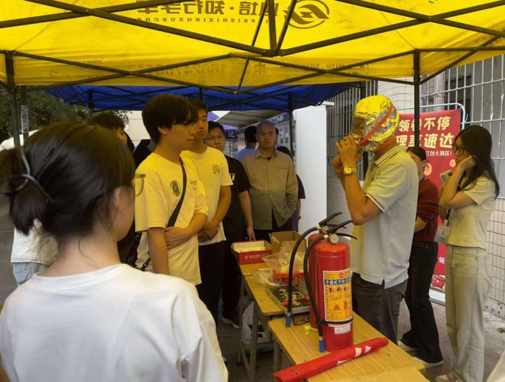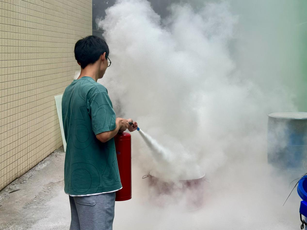 在本次活动中,指导老师为同学们现场讲解消防知识,如火灾发生时如何正确判断火灾形势、如何用湿毛巾捂住口鼻防止烟雾吸入、如何寻找安全通道逃生等,能让师生们掌握基本的逃生技能。接着,指导老师为同学们展示了灭火器、消防面罩和消防水枪的使用方法,