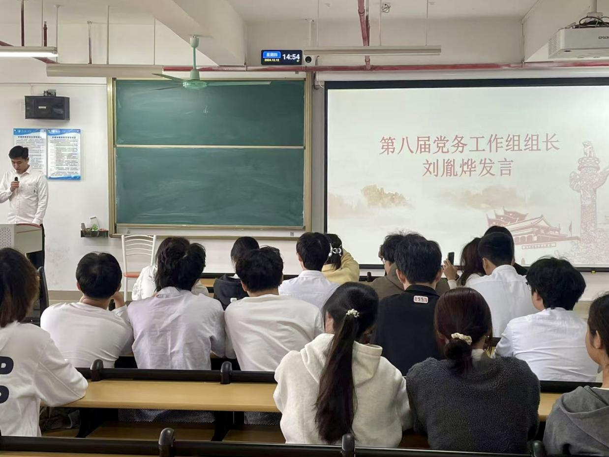 12月12日下午,为总结我院党务工作部2023~2024学年的工作,展望2024~2025年学年的工作,我院党务工作部在13栋502教室举行换届大会,党务工作部工作组、宣传组全体成员参会,会议由钟永翀同志主持。