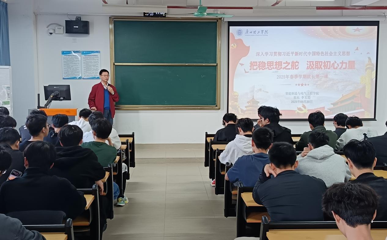 3月20日下午,智能制造与电气工程学院于13栋402教室召开2025年春季学期院长“思政第一课”。本次课程以《把稳思想之舵 汲取初心力量》为题,由李玉忠院长主讲,120余名学生代表参与学习。