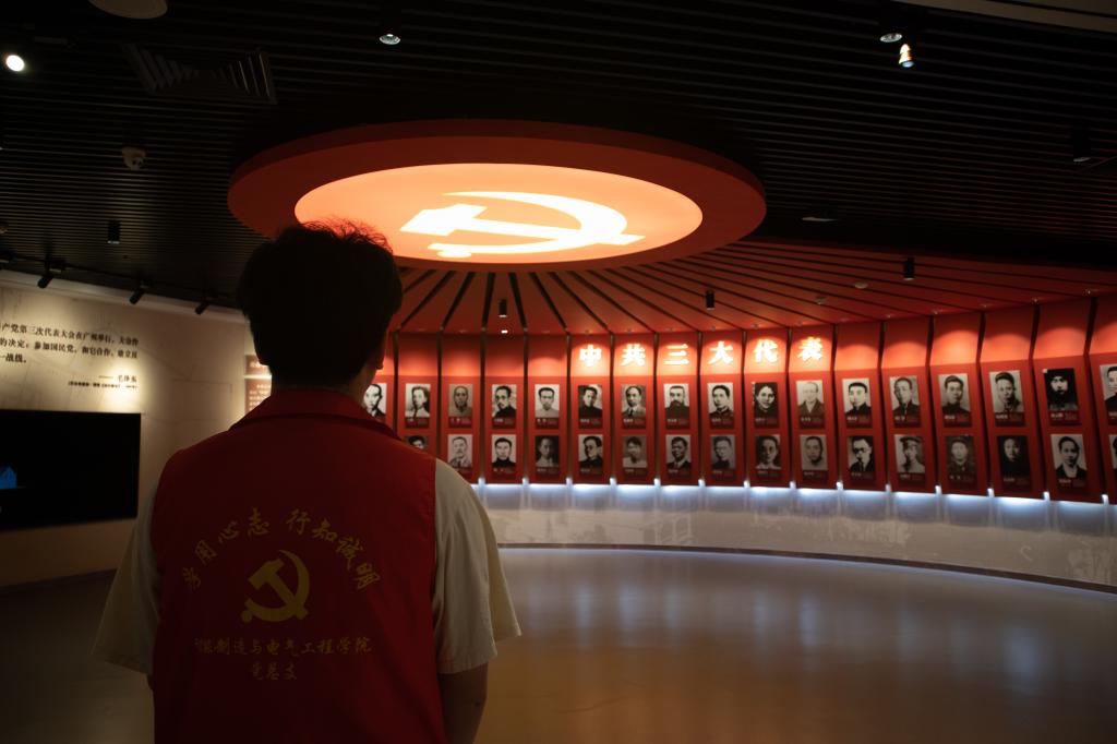 在“上下求索”展区,大家深入了解中国共产党成立的时代背景,认识到党在探索中国革命道路中提出反帝反封建的民主革命任务;在“中共三大的召开”展区,沉浸式观看全息影像《共识·1923》,仿佛身临其境地参与代表们关于入党方式、国共合作等重大议题的激烈讨论;在“大革命浪潮”展区,全面了解中共三大如何推动国共合作、促进北伐战争、引爆五卅运动等重大历史节点;最后,大家在“理想之光”展区前驻足,深切缅怀中共三大代表中18位在革命征途中英勇牺牲的英烈,感悟共产党人的初心与信仰。