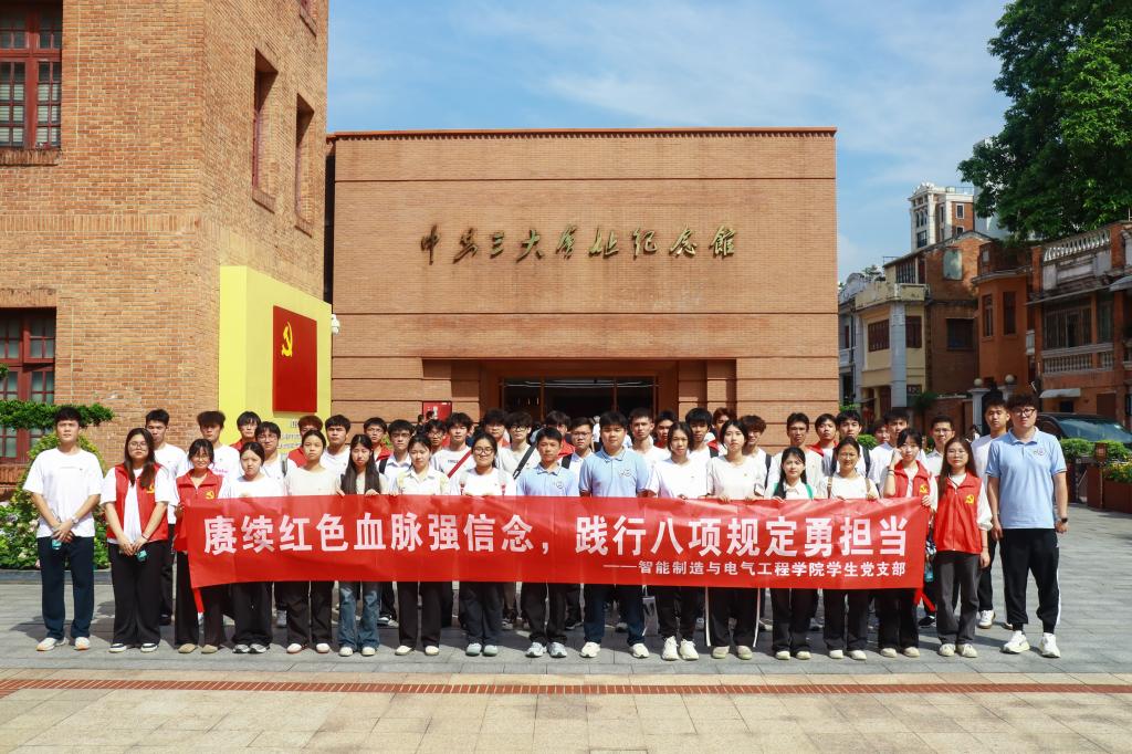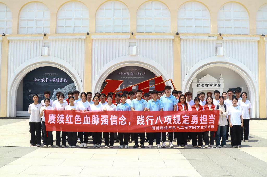 7月3日,智能制造与电气工程学院学生党支部组织开展“赓续红色血脉强信念,践行八项规定勇担当”主题党日活动。40余名学生党员、发展对象和积极分子在组织员张康老师的带领下,前往中共三大会址纪念馆与黄埔军校旧址纪念馆,开展一场“沉浸式党史学习+纪律教育体验”融合实践之旅。