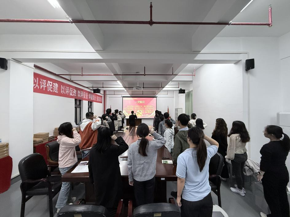 随后,袁增强同志作总结讲话,并提出“坚定信念、担当作为、严守纪律”的三点希望。同时号召全体党员发挥“传帮带”作用,助力新党员快速成长,凝聚支部合力,共同为学院高质量发展贡献力量。黄浩同志表态,感谢党组织培养与同志们的信任,将以入党誓词为遵循,高标准要求自己,上好课,多出科研和竞赛成果,积极参加学院集体活动,力争早日成为一名合格的正式党员。
