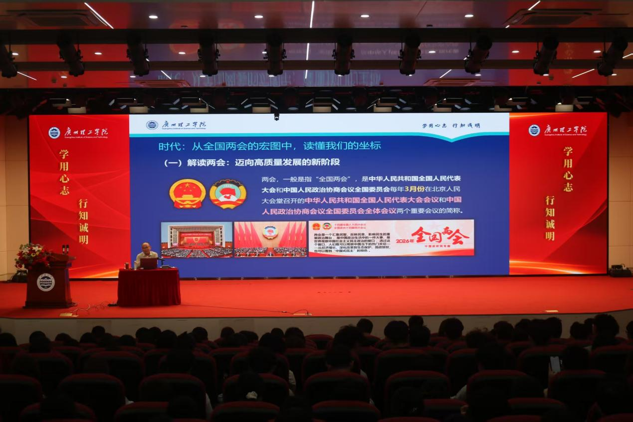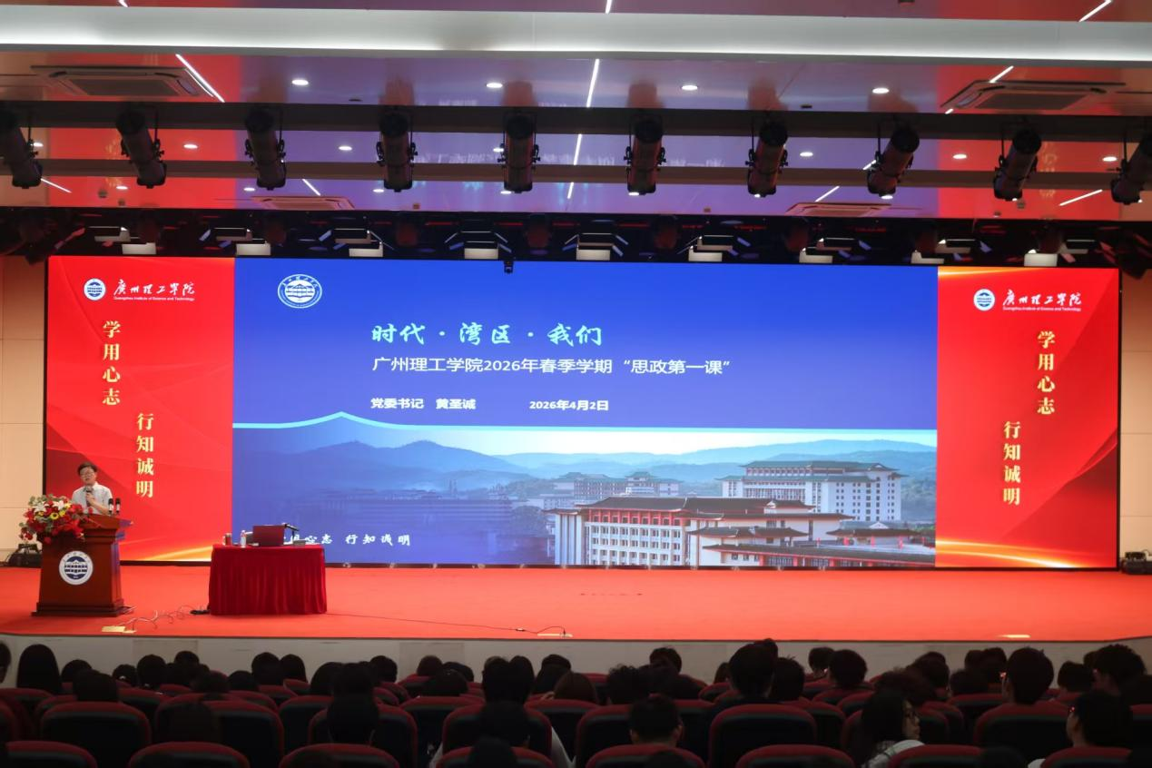 4月2日,学校2026年春季学期党委书记“思政第一课”在广州白云校区开讲。黄圣诚书记以“时代・湾区・我们”为主题,为学生们带来了一场兼具理论深度与思想温度的思政课。