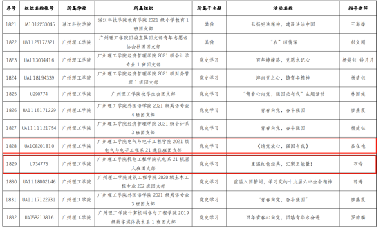 根据团省委《关于开展2021年广东省高校“活力在基层”主题团日竞赛活动的通知》的工作部署,我院团总支组织开展了2021年“活力在基层”主题团日竞赛活动秋季赛,结合党史学习教育,传承红色基因、赓续精神血脉,各团支部积极参与,其中我院21电气3班、19机器人2班、21通信班、21机器人班荣获省级“千入围”项目。