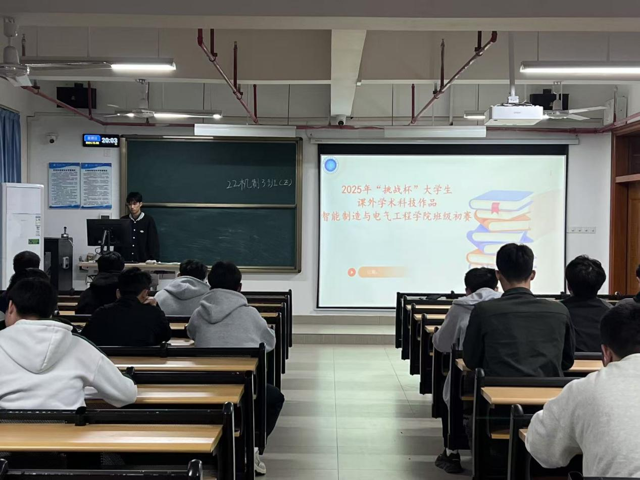 为深入学习贯彻党的二十届三中全会精神,落实团省委“百千万工程”重大战略部署,组织动员广大青年大学生为推动广东高质量发展贡献智慧,支持助力大学生创新创业。通过“以赛促教、以赛促学、以赛促创”增强学生的创新意识和实践能力,推动我院学科竞赛工作再上一个台阶,学院决定举办2025年“挑战杯”广东大学生课外学术科技作品竞赛院内选拔赛(初赛),在此之前各班进行了班内选拔赛的动员工作。