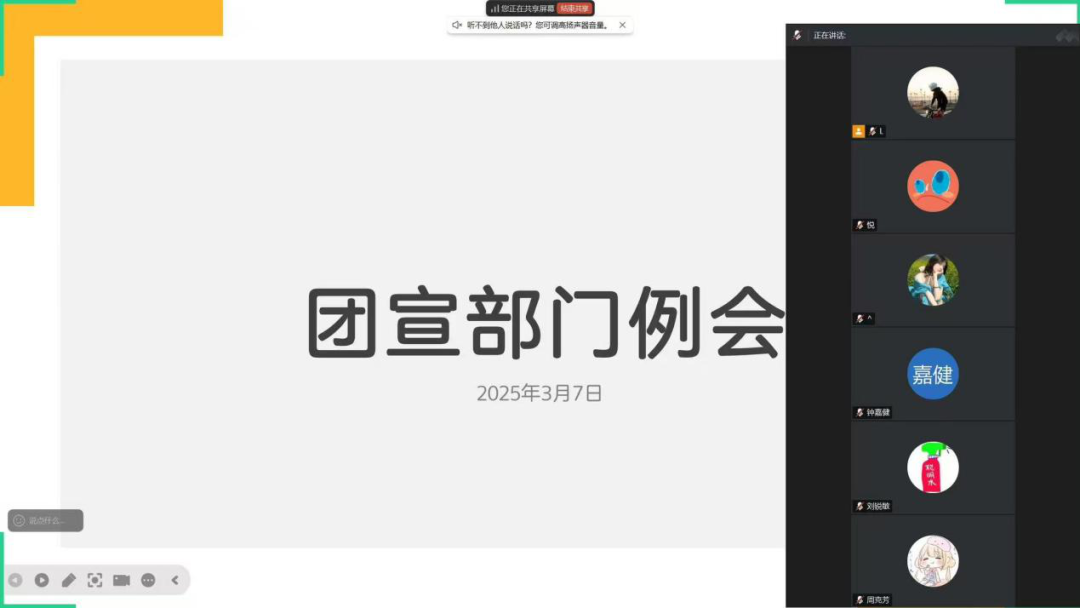 3月7日,智能制造与电气工程学院团学各部门陆续召开新学期线上例会。本次线上例会由各部门部长主持,全体团学学生成员参加。例会主要围绕近期工作成果进行总结,并针对现存问题提出改进方案,为提升团学工作效能锚定方向。