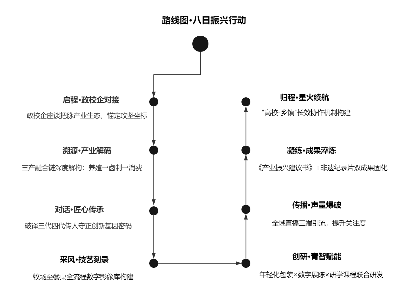 联动当地政府、志愿协会及非遗传人三方,贯通百千万工程实践全链;以国创赛二等奖的调研、策划能力助非遗项目精准落点、高效履约。