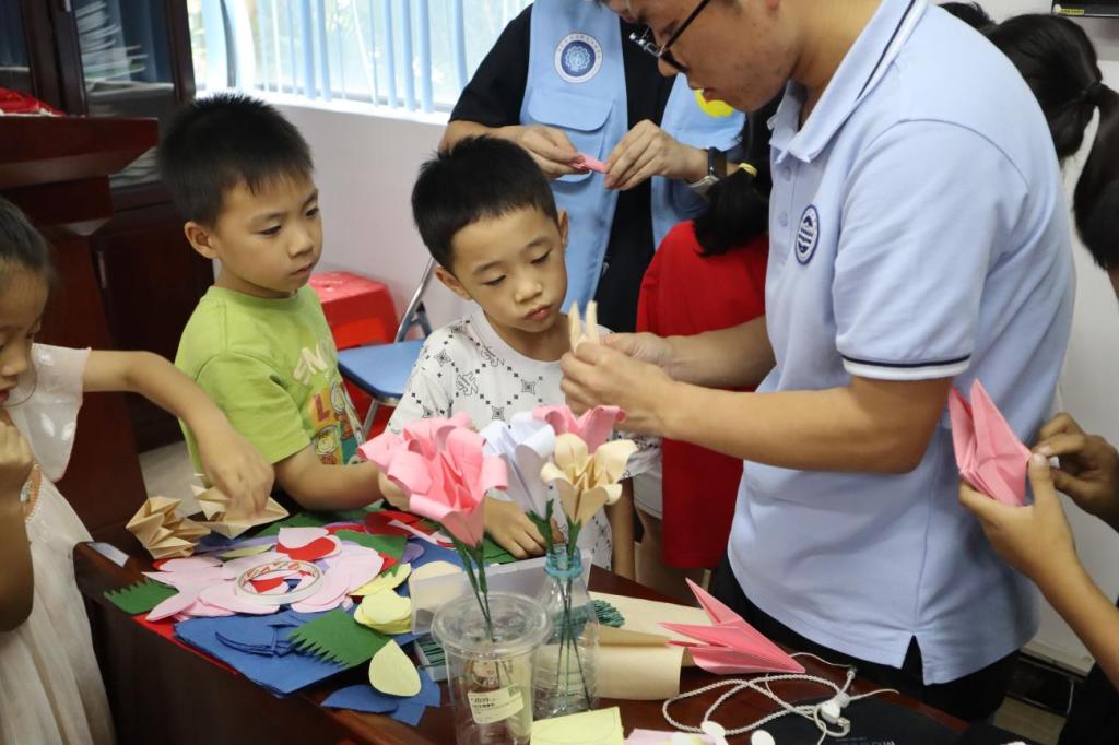 没有隆重的结营仪式,只有孩子们自发围成的小圈。最后一天,志愿者收拾教具时,一个小女孩把折好的纸鹤塞进队员手心:“哥哥,谢谢你教我写毛笔字。”另一个男孩把画好的醒狮贴在门口:“姐姐,明天你们还来吗?”