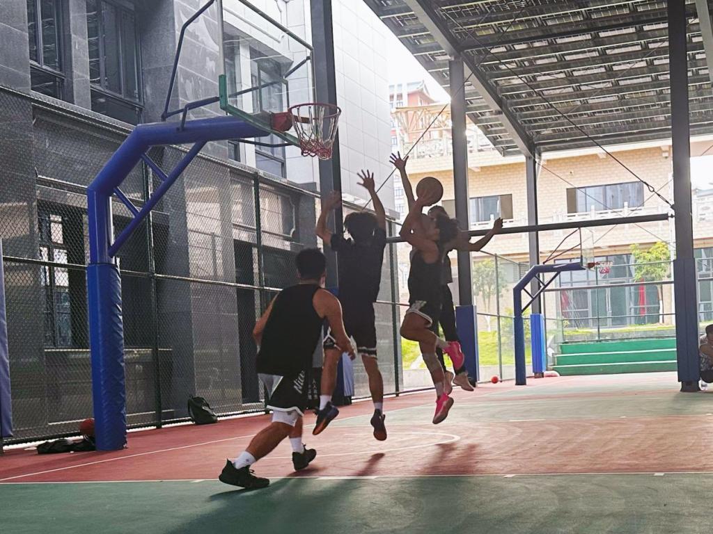 20名晋级选手通过抽签分为 5支 4 人小队,展开 10 分钟半场对抗赛。与个人测试不同,此轮评审重点关注传球视野、防守积极性、无球跑动等团队属性。赛场上迅速掀起高潮:有的队伍依靠快攻反击连续得分,有的则以 “挡拆 + 内切” 的战术稳扎稳打。其中,由 3 名后卫组成的 “快攻队” 凭借默契的传切配合,单场砍下 15 分;而另一支 “双塔队” 则依靠内线卡位抢板,多次限制对手进攻。