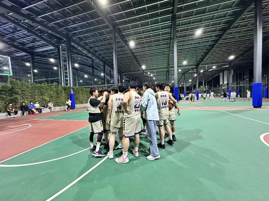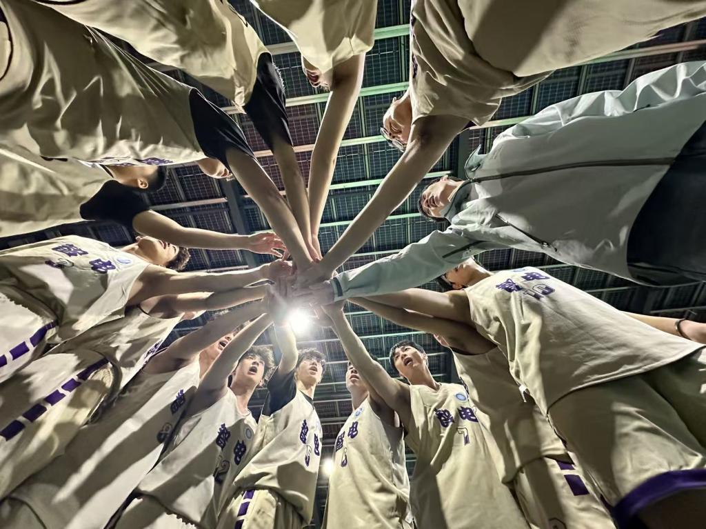赛后,智电男篮队员围成一圈,将手掌叠在一起高呼口号,庆祝这场来之不易的胜利。本场获胜后,智电男篮以小组赛四战全胜的战绩锁定头名,顺利晋级新生杯半决赛。