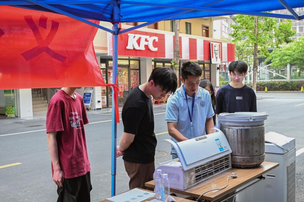 后勤管理办公室的陈老师在第一社区摊位现场开展洗衣机、空调自助清洗专题的讲解,吸引了大批师生前来观摩学习,陈老师细致拆解清洗流程、安全操作规范及日常养护技巧,现场解答师生疑问。讲解过程中,大家听得十分认真,一边仔细聆听要点,一边默默记下关键技巧,不少师生纷纷表示,这样接地气、重实用的专题讲解太有意义了,学到的都是日常生活中能用得上的真本领,既能自己动手清洗家电,保持家电干净整洁,又能保障使用安全、延长家电使用寿命,切实提升了生活自理能力和生活品质。