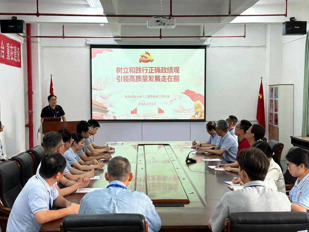 3月26日下午,智电学院在11教311会议室开展树立和践行正确政绩观学习教育集中学习研讨,切实把学习成效转化为推动学院高质量发展的强大动力。学院党总支书记吕在艳主持会议并讲话,学院领导班子、全体教工党员参加。