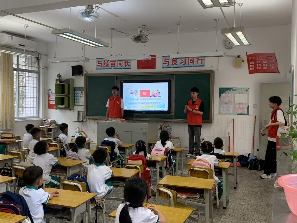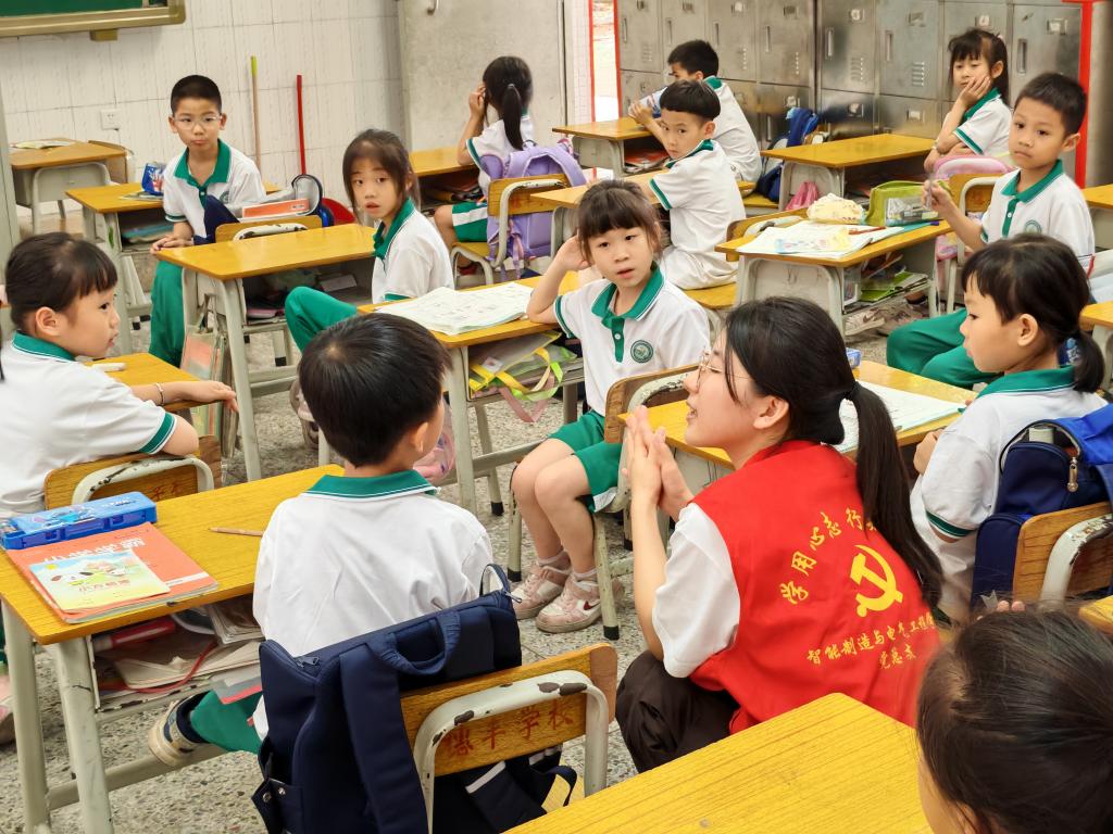 为了让更多的青少年树立用电安全意识,掌握用电安全知识,智能制造与电气工程学院学生第一党支部全体党员于4月18日下午前往穗丰小学开展“手拉手共建安全网 心连心同传平安符”主题党日活动,对一、二年级全体小学生进行用电安全宣传,为学生们上了一堂精彩的用电安全教育课。