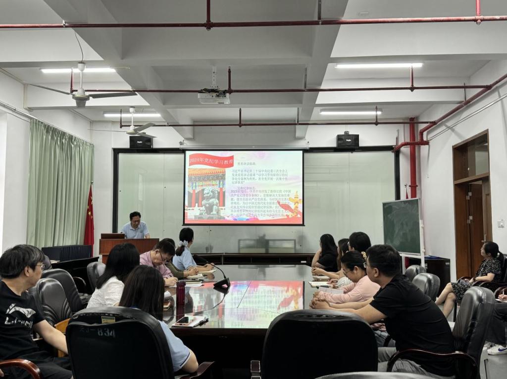 为进一步推动党纪学习教育走深走实,加强教师党员的纪律教育和党性修养,引导党员教师牢固树立党纪意识、坚守纪律底线。6月6日下午,智电学院教工党支部副书记袁增强于工程楼211讲授了以“学党纪、固思想、束行为”为主题的党课。