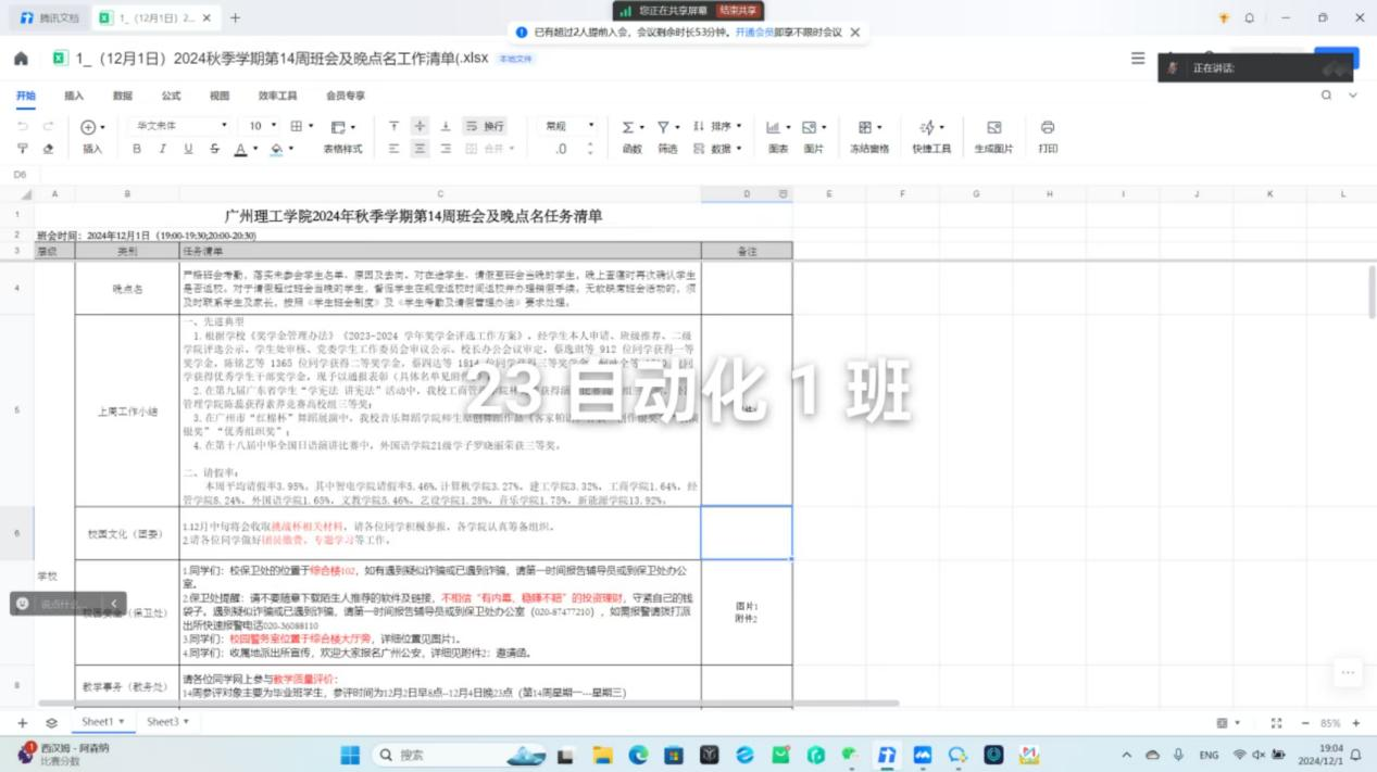 为加强学生的纪律意识,弘扬诚信考试精神,确保期末考试顺利进行,12月1日,智电学院通过线上腾讯会议平台,成功召开了以“遵纪守规,诚信应考”为主题的班会,班会由班长主持,全体同学参与。