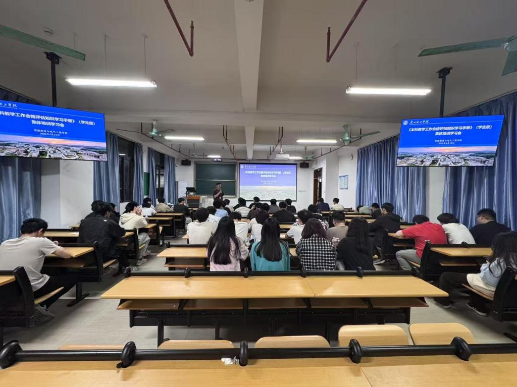 为深化学生对本科教学工作合格评估的认知,提升学生应对评估访谈的能力,营造良好的评估氛围,继3月中旬学院面向全体学生开展第一次本科教学工作合格评估《座谈访谈参考问题汇编》(学生版)集体培训后,4月13日晚,智电学院以班级为单位,在13号教学楼各班教室组织开展了《本科教学工作合格评估知识学习手册》(学生版)集体培训学习及访谈模拟演练主题班会,各班辅导员主讲,全体同学积极参与。