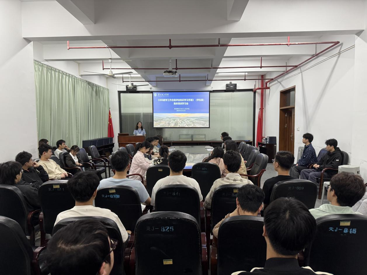 为积极迎接本科教学工作合格评估,切实增强学生对评估工作的认知与参与热情,4月13日,智电学院于十一栋教学楼211会议室精心组织了一场意义非凡的《本科教学工作合格评估知识学习手册》(学生版)班干部集体培训学习和访谈模拟演练会。学院党总支书记吕在艳、全体辅导员以及各班学生干部代表齐聚一堂,共同参与此次活动。