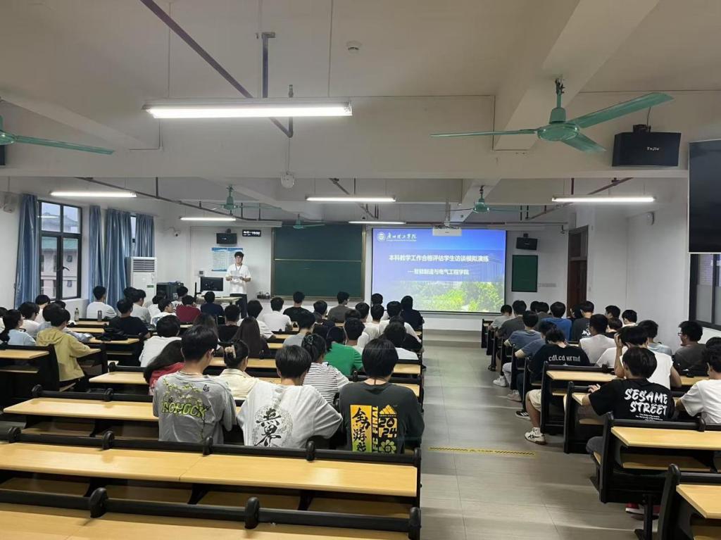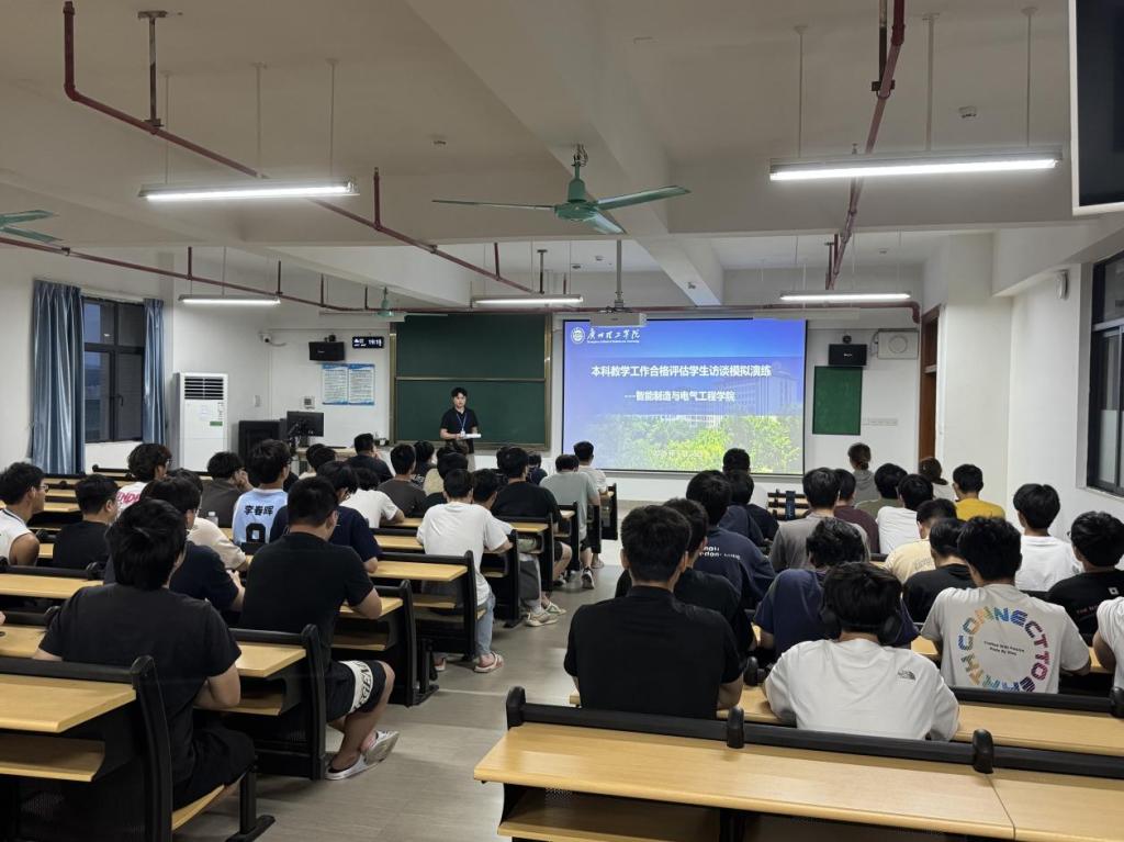 为迎接本科教学工作合格评估,班会重点安排了《评估手册(学生版)》的持续学习任务。辅导员提醒全体同学深入理解评估指标,明确个人在学风建设中的角色。随后,各班组织开展了模拟访谈演练,通过角色扮演、情景问答等形式,帮助学生熟悉评估流程,提升应答能力,展现智电学子良好的精神风貌。
