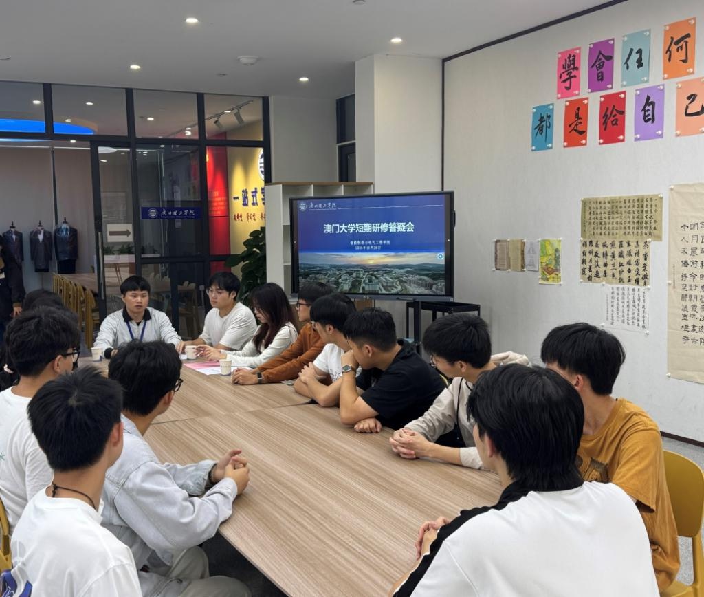 为助力学生充分准备澳门大学短期研修活动,10月28日,广州理工学院智能制造与电气工程学院于第九社区开展澳门大学短期研修答疑会,解答学生疑惑、分享宝贵经验,会议由王华飞老师主持,全体参加澳门大学短期研修会的同学积极参与。