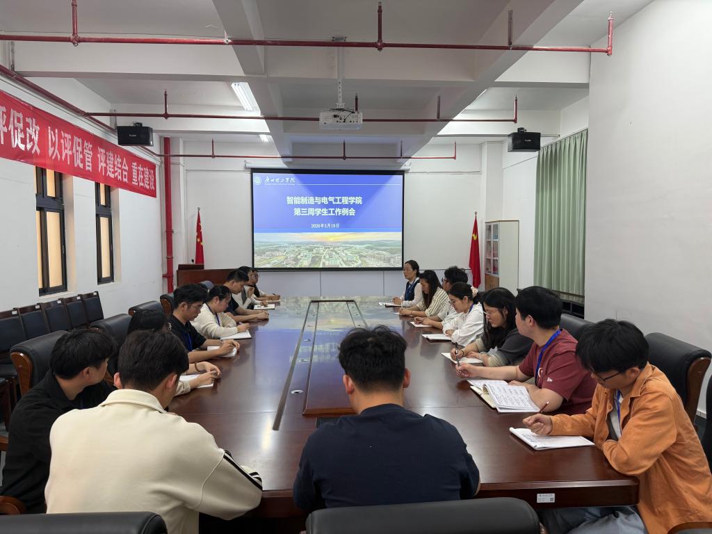 3月19日,智能制造与电气工程学院在学院311会议室召开第三周学生工作例会,重点围绕近期本科教学工作合格评估专家预评环节的学生相关工作开展全面复盘梳理。学院党总支书记吕在艳主持会议,党总支副书记刘紫云和全体辅导员参加会议。