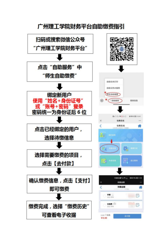 具体操作流程可参考《广州理工学院财务平台自助缴费指引》。