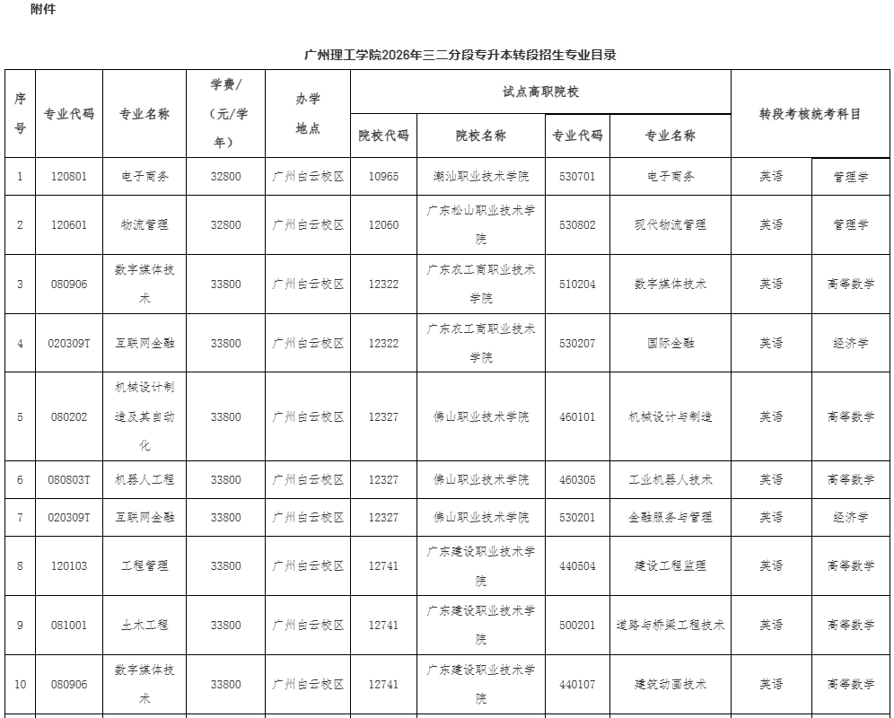 我校2026年三二分段专升本转段招生专业目录详见附件,以广东省教育考试院公布为准。