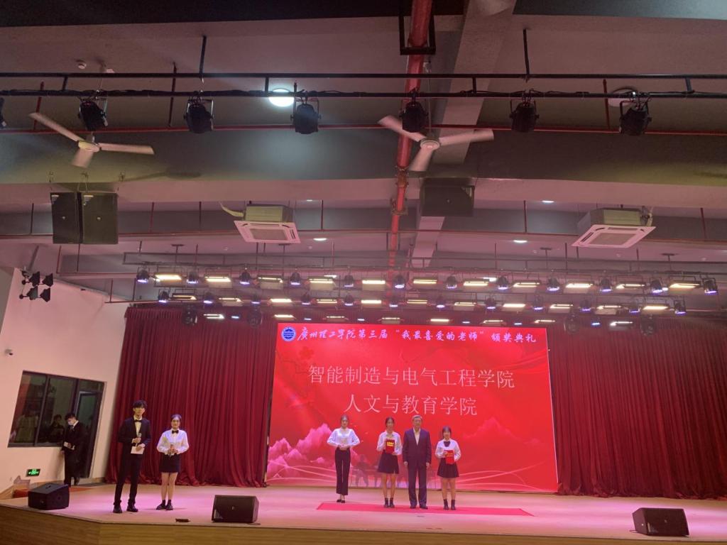 11月9日,广州理工学院第三届“我最喜爱的老师”颁奖典礼在一号学术报告厅举行。出席本次颁奖典礼的有校长胡社军,党委书记黄圣诚,常务副校长伏焕昌,党委副书记、副校长肖海,以及教师、学生代表。