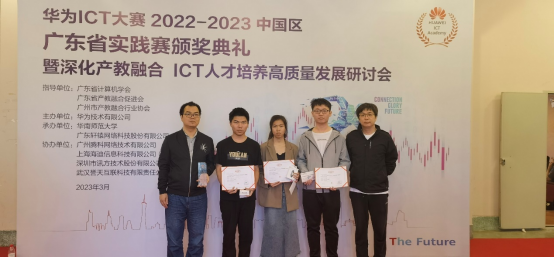 3月19日,华为ICT大赛2022-2023中国区广东省实践赛颁奖典礼暨深化产教融合,ICT人才培养高质量发展研讨会在华南师范大学成功举办。智能制造与电气工程学院汪理老师和周湛樟老师带队参加颁奖典礼,我院陈绮珊、黄志聪、李俊鹏三位同学获得本科组计算赛道二等奖。