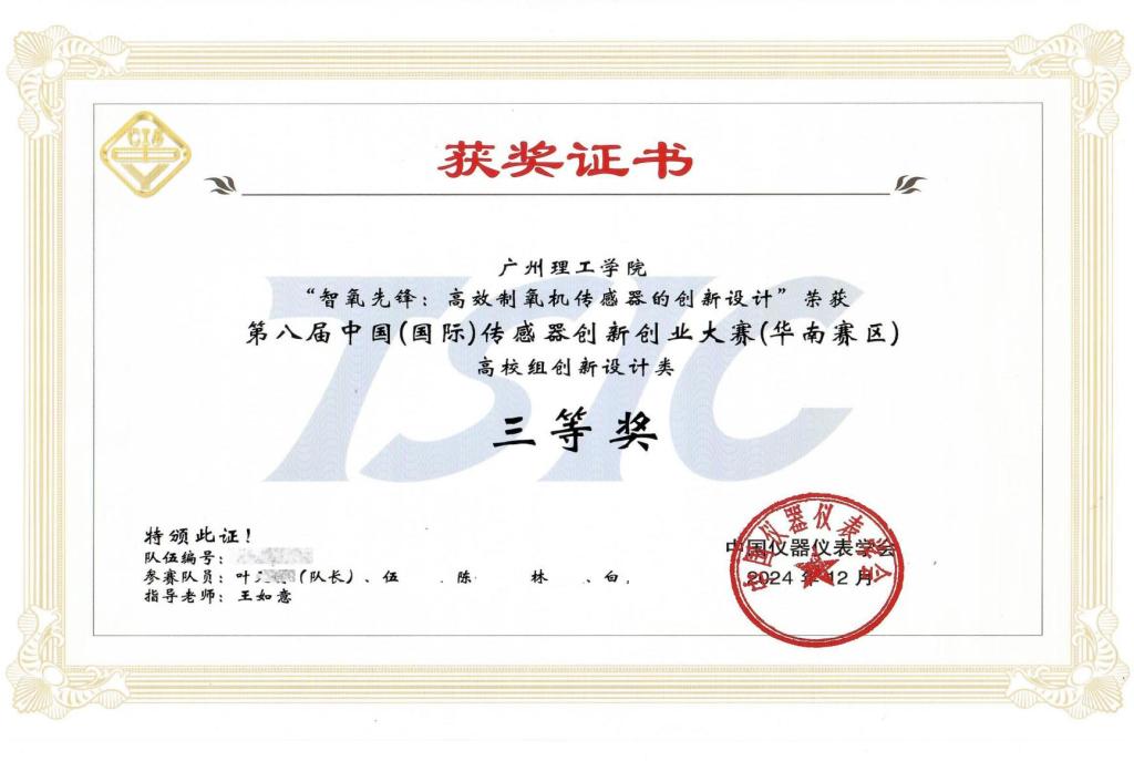 本次大赛吸引了众多来自华南地区高校和企业的优秀团队参与,我校两支参赛队伍在比赛中展现出了非凡的实力和创新精神。其中,“智氧先锋:高效制氧机传感器的创新设计”项目,由叶天明(队长)、伍鑫平、陈仁澍、林煜欣、白雪五位同学共同完成,凭借独特的设计理念和在高效制氧机传感器技术方面的创新突破,成功斩获高校组创新设计类三等奖。而“小蒜机器人传感器智能控制”项目,在许错烨(队长)、黄伟龙、廖金鑫、叶天字四位同学的共同努力下,通过巧妙的传感器系统设计和智能化的控制技术,实现了小蒜机器人的高效智能控制,荣获高校组创新应用类三等奖。
