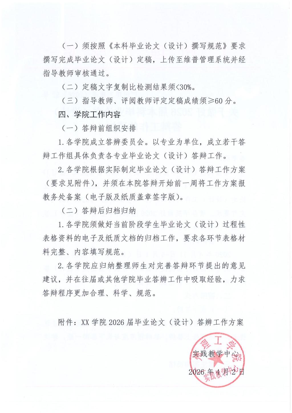 关于做好2026届本科毕业论文(设计)答辩工作的通知