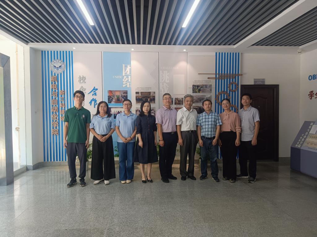 智电学院评建工作小组成员与该校机械工程与自动化系主任陈强、机械设计制造及其自动化专业负责人石从继进行了交流座谈,并参观了其智能制造工程训练中心。