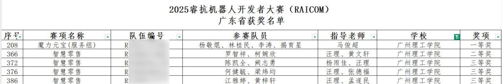 近日,2025年睿抗机器人开发者大赛(RAICOM)广东省赛圆满落幕,学校智能制造与电气工程学院派出五支参赛队伍,由汪理老师与马俊超老师带队,参与智慧零售与魔力元宝两大赛项角逐,最终荣获一等奖一项、二等奖一项、三等奖三项。