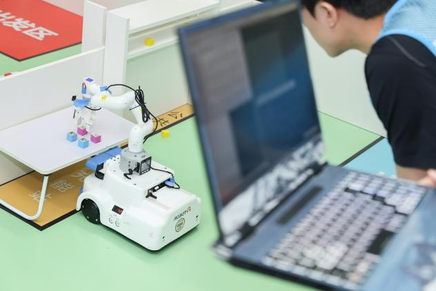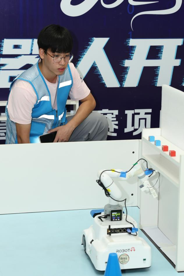 智慧零售赛项的参赛团队完成智能仓储全流程任务,实现了机器人商品精准识别与指令执行,攻克了多目标货物分拣及动态路径优化的难题,处理了复杂环境避障与配送效率挑战,验证了无人系统协同调度技术方案。