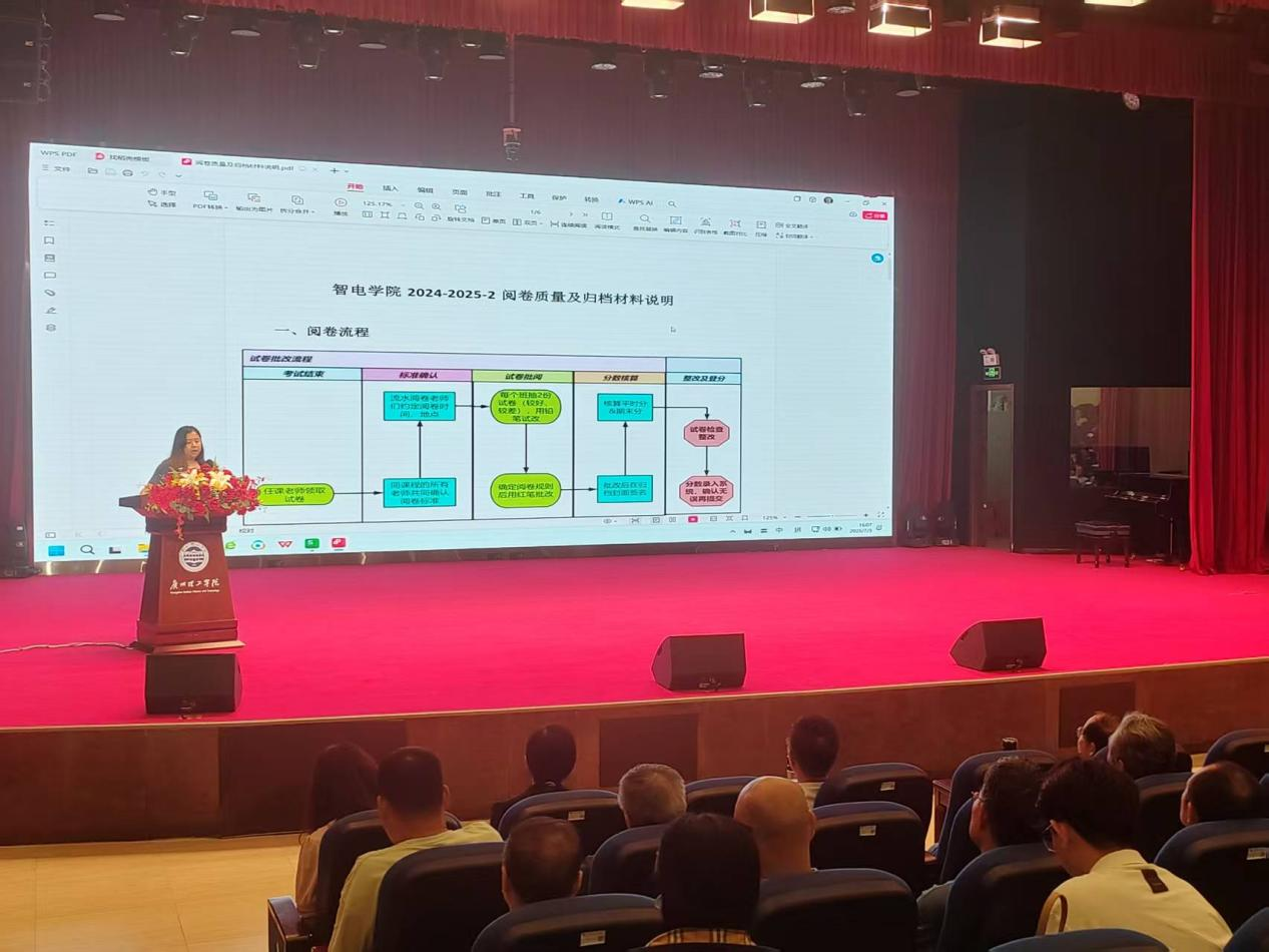 为严格落实《2025年教学质量专项评估实施方案》要求,响应教学质量监测与评估中心工作部署,切实做好第21周学院阅卷质量自评估工作,7月3日,智电学院在3号报告大厅召开阅卷质量及归档材料说明专题会议。学院全体教师参会,共同聚焦阅卷规范与材料归档,为教学质量把关筑牢基础。